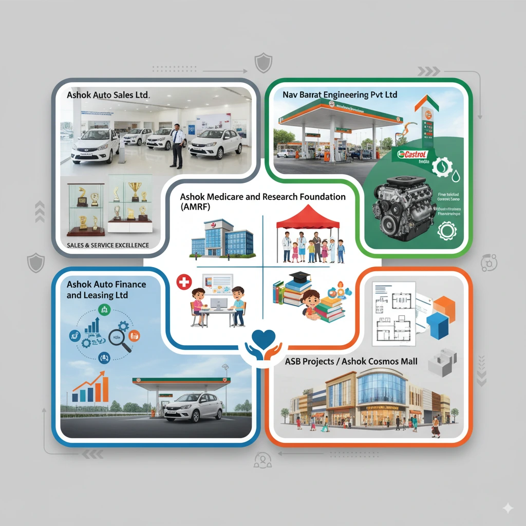The Ashok Group of Companies is a well-established business conglomerate with a strong presence in the automotive, finance, engineering, petroleum, healthcare, and real estate sectors. Established in 1956 with Ashok Auto Sales Ltd, the group has grown to include multiple dealerships, financial services, and social initiatives. Their healthcare wing, Ashok Medicare and Research Foundation (AMRF), runs charitable hospitals, medical camps, and educational programs for the underprivileged. Over the years, the group has received numerous awards for excellence in sales, customer service, and corporate social responsibility, and has diversified into real estate with ventures like Ashok Cosmos Mall.